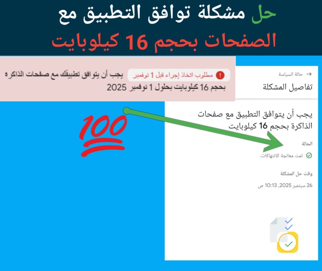 حل مشكلة يجب أن يتوافق تطبيقك مع صفحات الذاكرة بحجم 16 كيلوبايت